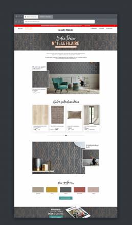 Création de plusieurs landing pages pour présenter les nouvelles tendances de papiers peints St Maclou, ainsi que les idées décos associées.